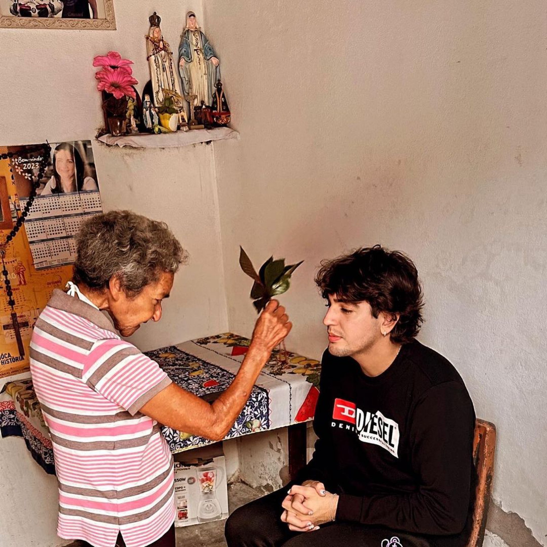 Dono dos sucessos “Love Gostosinho", “Comunicação Falhou”, entre outros hits do piseiro, o músico de 22 anos de idade foi ao bairro Curió, em Fortaleza, para se encontrar com dona Rita.