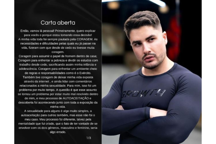 “Meu processo de autoaceitação e descoberta foi acontecendo junto com toda a exposição da minha vida”, escreveu. O ex-militar expressou sua confusão em relação aos seus sentimentos, afirmando que está em processo de autoconhecimento.