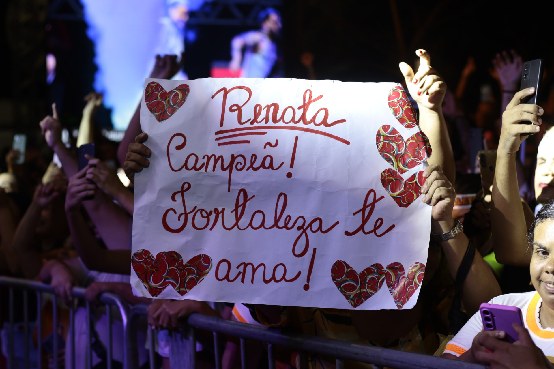 Em entrevista ao O POVO , a cantora declarou torcida para Renata . A transmissão tem estrutura que inclui palco e telões no espaço, custeados por empresas parceiras da Prefeitura de Fortaleza.