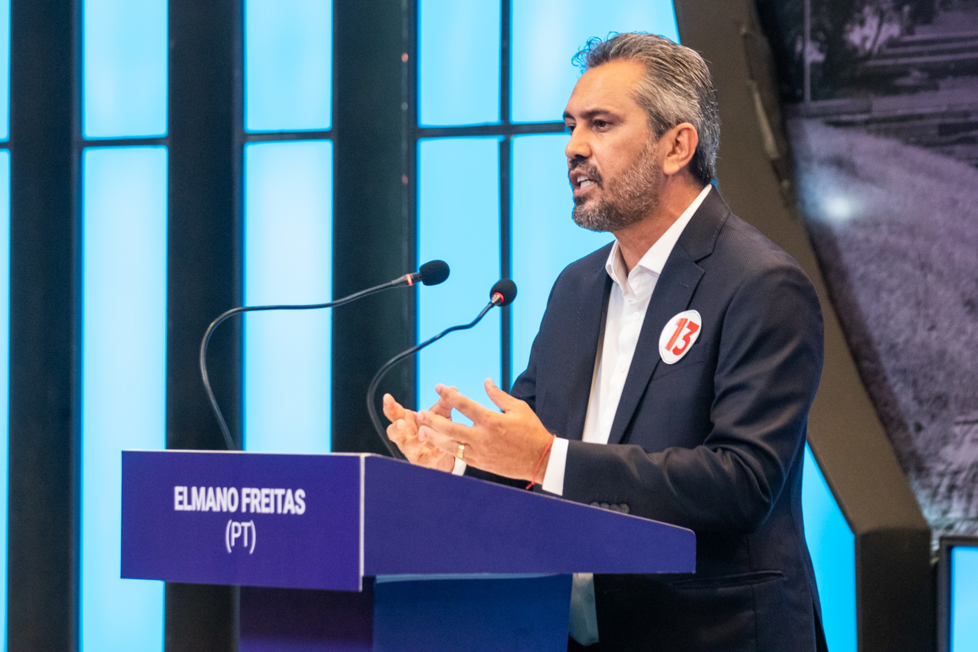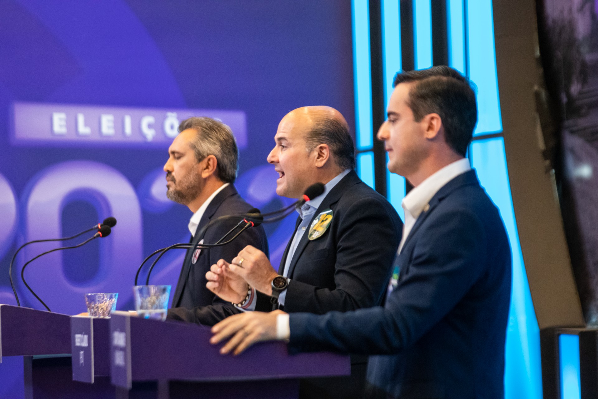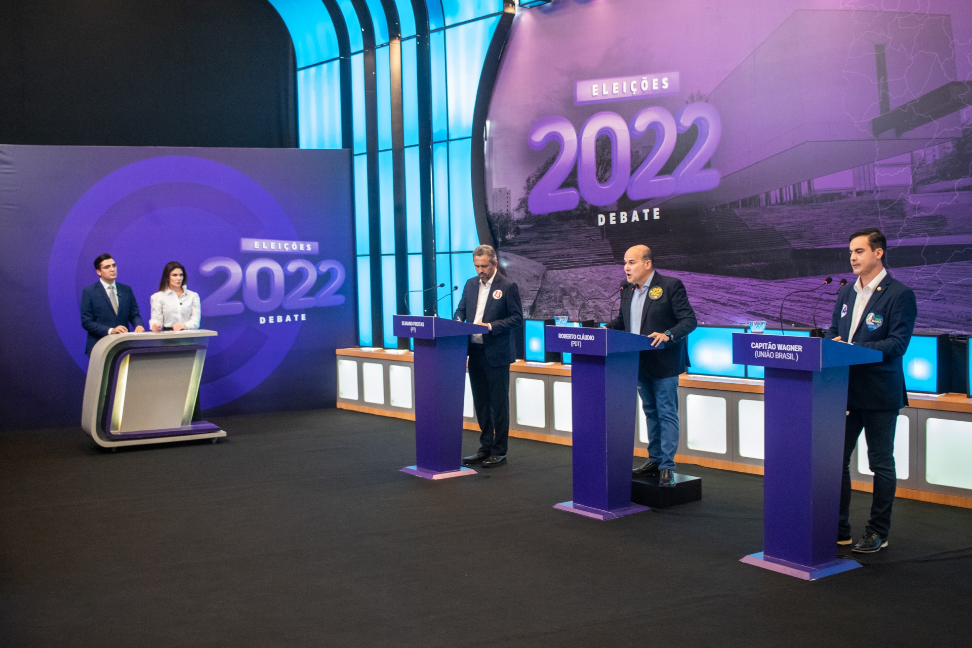 A seis dias do primeiro turno das eleições, os candidatos ao Governo do Ceará voltaram a ficar frente a frente em novo debate realizado na noite desta segunda-feira, 26, em Fortaleza. No encontro, promovido pelo Grupo Cidade de Comunicação, Capitão Wagner (UB), Elmano Freitas (PT) e Roberto Cláudio (PDT) trocaram acusações mútuas. Os embates mais acalorados foram sobre segurança pública e apadrinhamentos políticos.