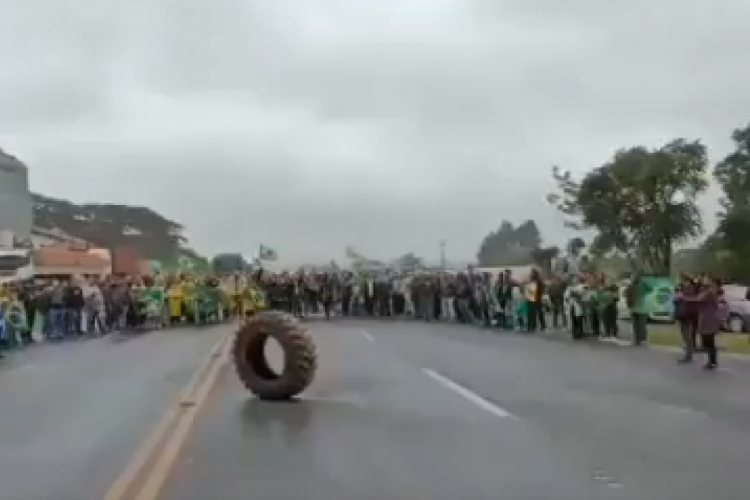 As imagens mostram o momento em que os manifestantes fecham a rodovia e, com o pneu no centro da pista, cantam o Hino Nacional. Alguns apoiadores usaram capa de chuva e casacos fechados para aguentar o tempo frio no município. Segundo o Instituto Nacional de Meteorologia (INM), há um alerta de onda de frio na região.