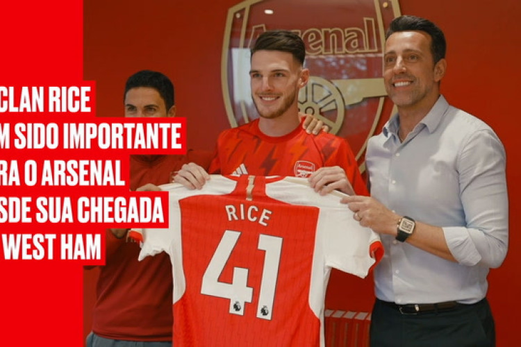 Confira um vídeo sobre a passagem de Declan Rice no Arsenal após uma passagem de sucesso pelo West Ham.