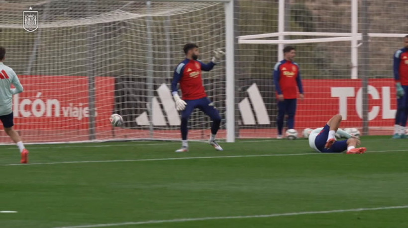 Os jogadores da seleção espanhola praticaram finalizações nos treinos antes do próximo jogo contra a Sérvia.