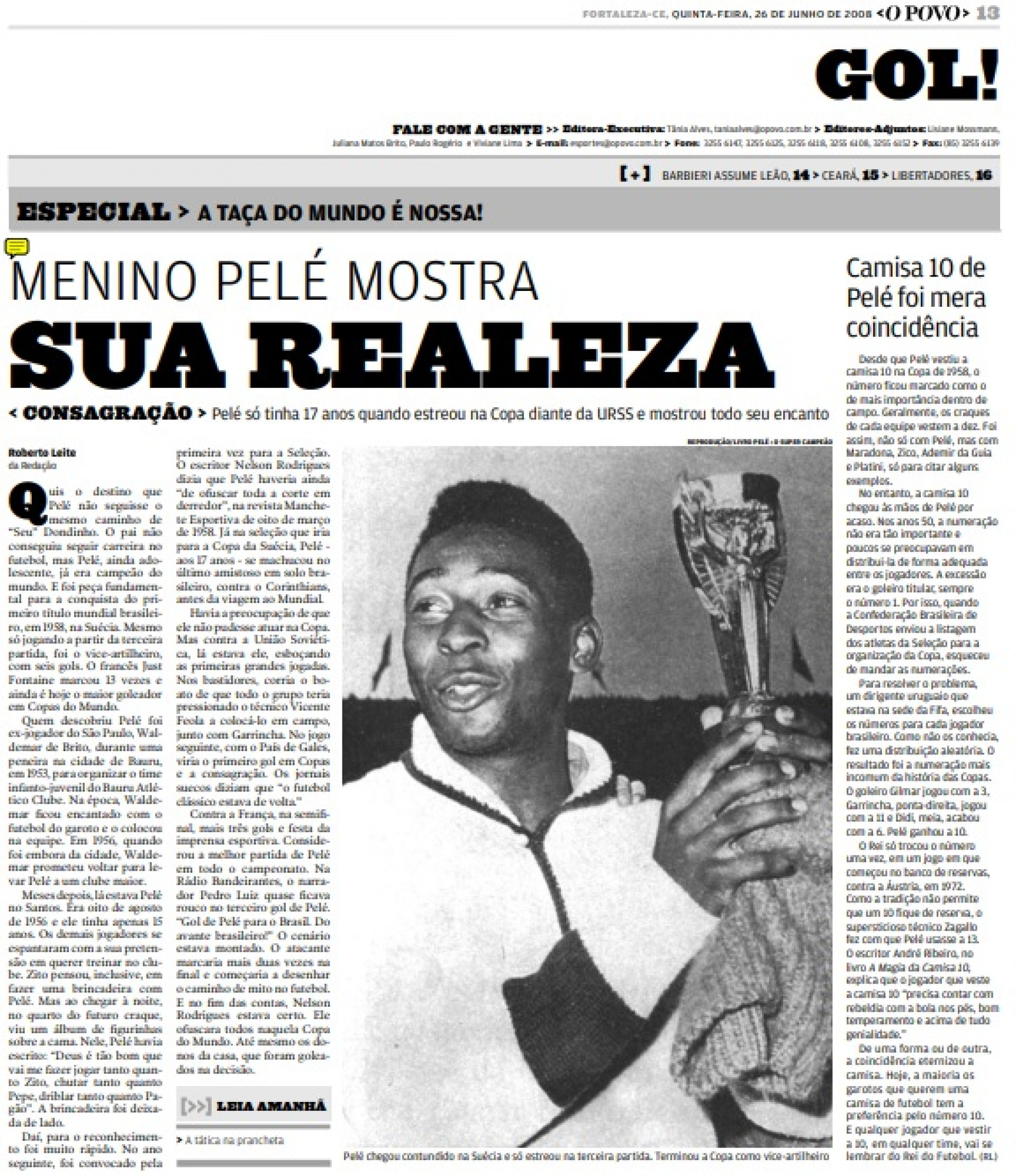 Para relembrar momentos marcantes da carreira do Rei do Futebol, O POVO resgatou capas históricas que contam parte da trajetória do lendário mineiro. Confira: