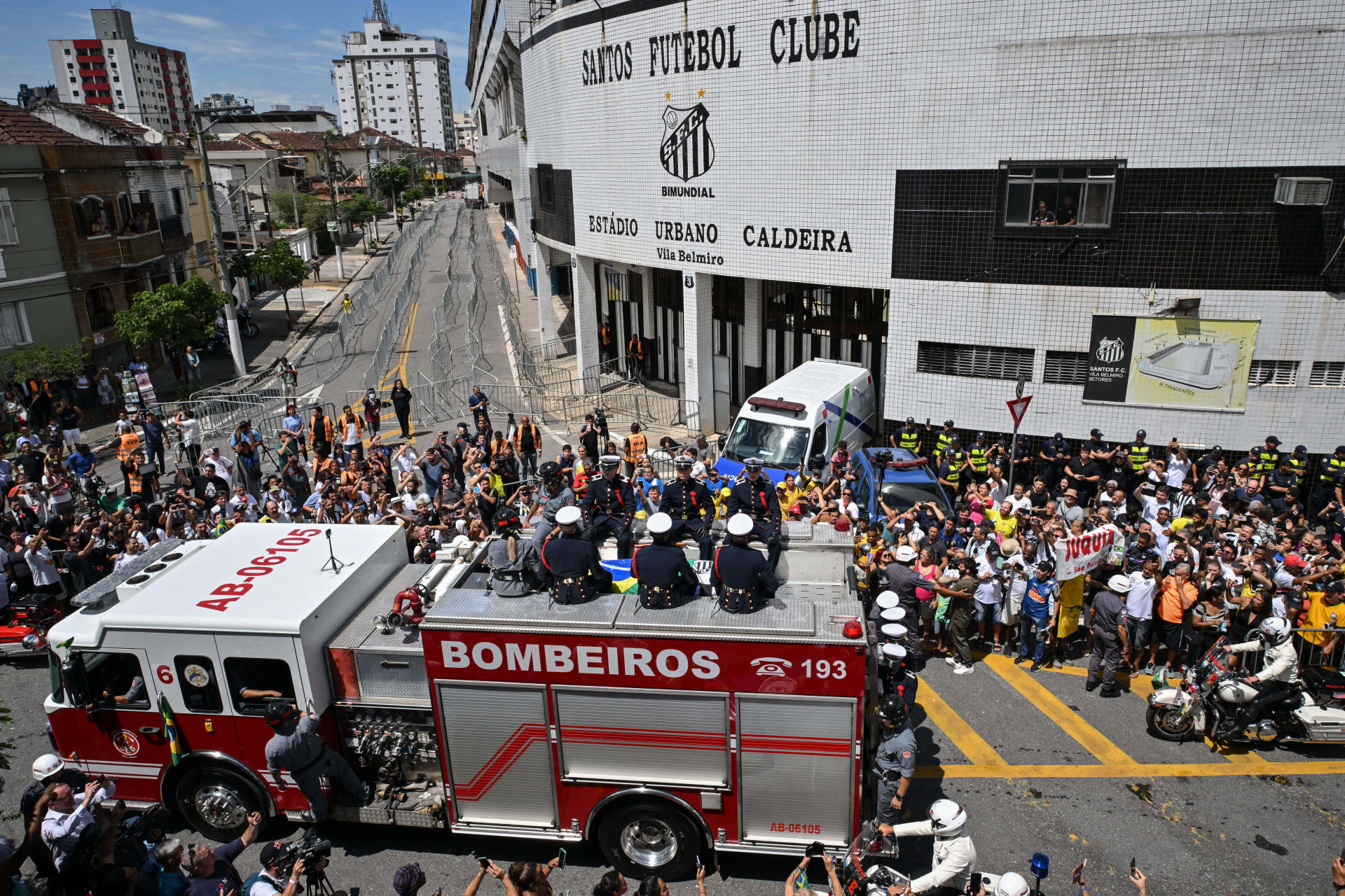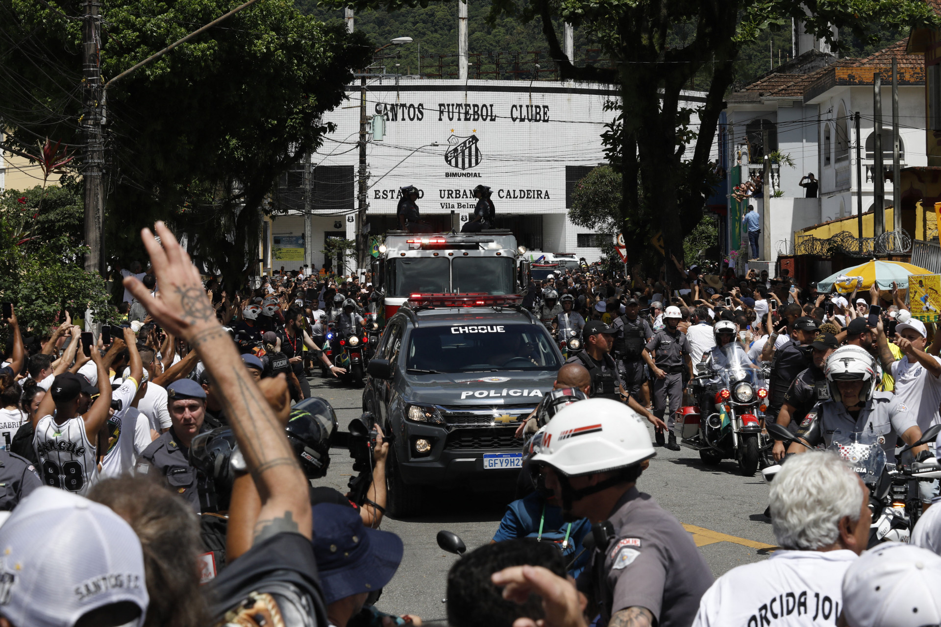 Corpo de Pelé segue em cortejo pelas ruas de Santos antes de sepultamento