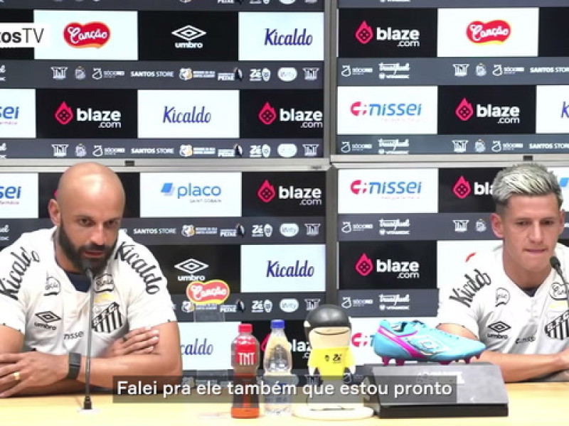 Thaciano e Leo Godoy são apresentados pelo Santos Novos reforços do Peixe para 2025 participaram de coletiva nesta quarta-feira (15). 16:42 | Jan. 15, 2025 Por: OneFootball Thaciano e Leo Godoy são apresentados pelo Santos (foto: OneFootball - Nacional)