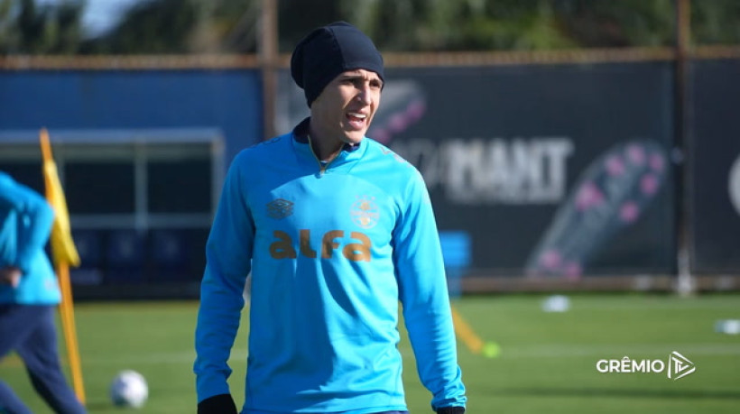 Elenco do Grêmio reinicia treinamento em campo no frio gaúcho