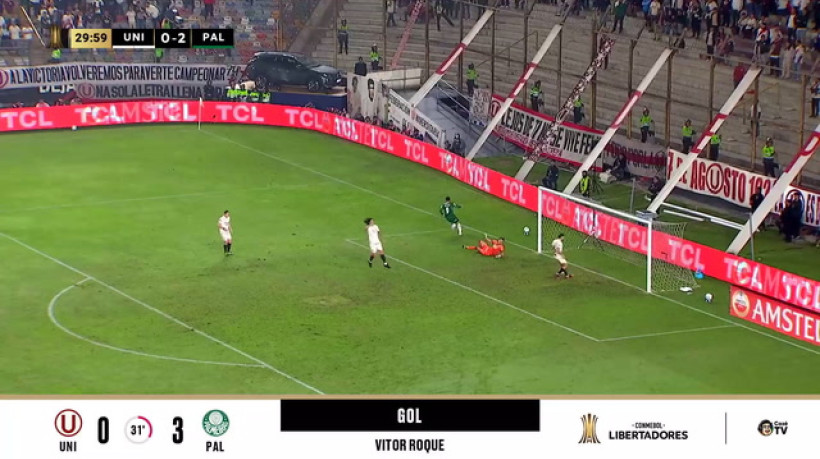 GOL DO PALMEIRAS! Vitor Roque ganha disputa com zagueiro e marca o terceiro no Peru