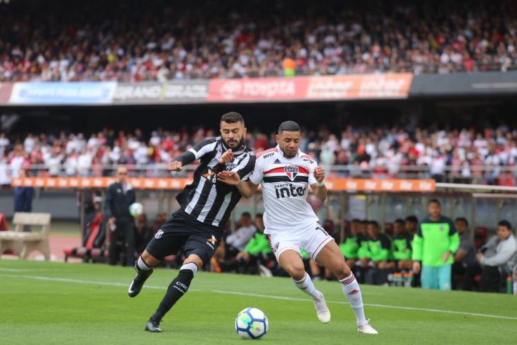 O tricolor paulista ainda chegou duas vezes seguidas em contragolpes com Luan e Reinaldo, que pararam em defesa de Everson e em chute travado com o volante Fabinho, improvisado na lateral-direita. A melhor chance do Ceará veio aos 18 minutos em jogagaça individual de Leandro Carvalho. O atacante enfileirou quatro marcadores, tabelou com Arthur, invadiu a área e finalizou para a defesa de Sidão.