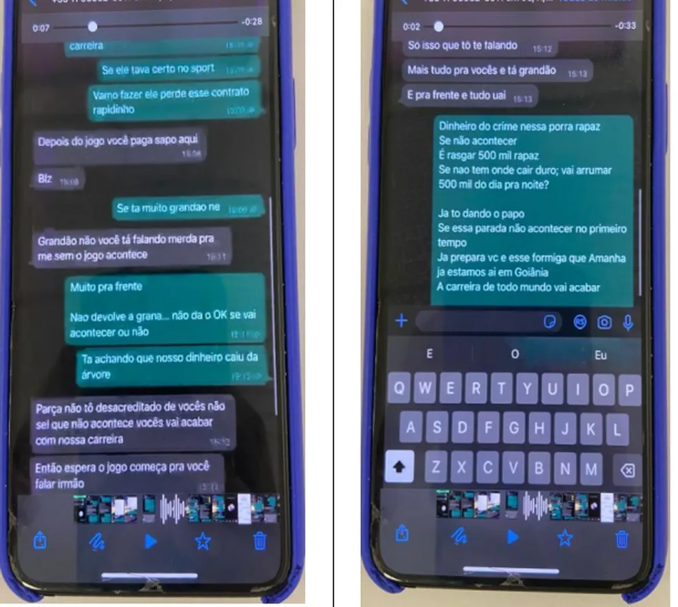 Bruno Lopez, então, compartilhou trechos da conversa que teve com Romário, em tom de ameaça aos jogadores, caso a penalidade não fosse cometida. "Já tô dando o papo. Se essa parada não acontecer no primeiro tempo já prepara você e esse Formiga que amanhã já estamos aí em Goiânia. A carreira de todo mundo vai acabar".