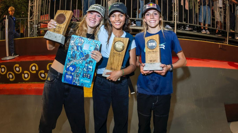 Nem mesmo a chuva na praça Duó, no Rio de Janeiro, o atraso e a paralisação de provas do Skate Total Urbe (STU) Pro Tour Rio foram capazes de tirar os brasileiros do pódio da competição neste domingo, 20. Ao todo, dez representantes do Brasil estiveram entre as três melhores posições das diversas provas do torneio, com destaque para Rayssa Leal, que conquistou o seu tetracampeonato no skate street do STU, sendo o terceiro título seguido.