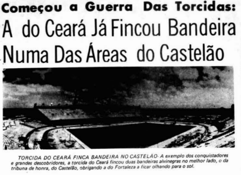 Na epóca a disputa era por quem ocuparia o local mais privilegiado, ao lado da Tribuna de Honra. Com rapidez, os torcedores alvinegros fincaram duas bandeiras - uma em cada poste de iluminação - sobrando ao Fortaleza o lado que tinha o sol na frente.
