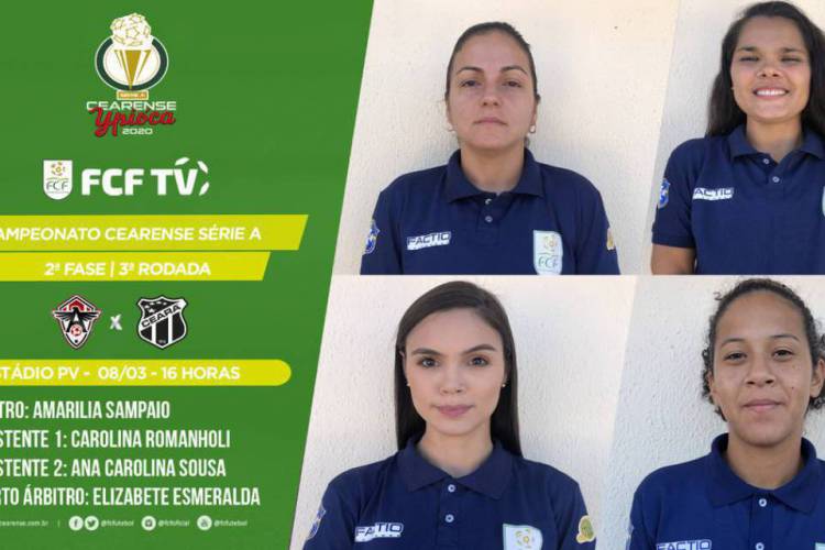 Quando as equipes de Atlético Cearense e Ceará entrarem em campo neste domingo, 8, para iniciarem a partida válida pelo Campeonato Cearense, às 16 horas, serão conduzidos por mulheres. Em homenagem ao Dia Internacional, comemorado no mesmo dia, a Federação Cearense de Futebol escalou somente árbitras para o duelo.