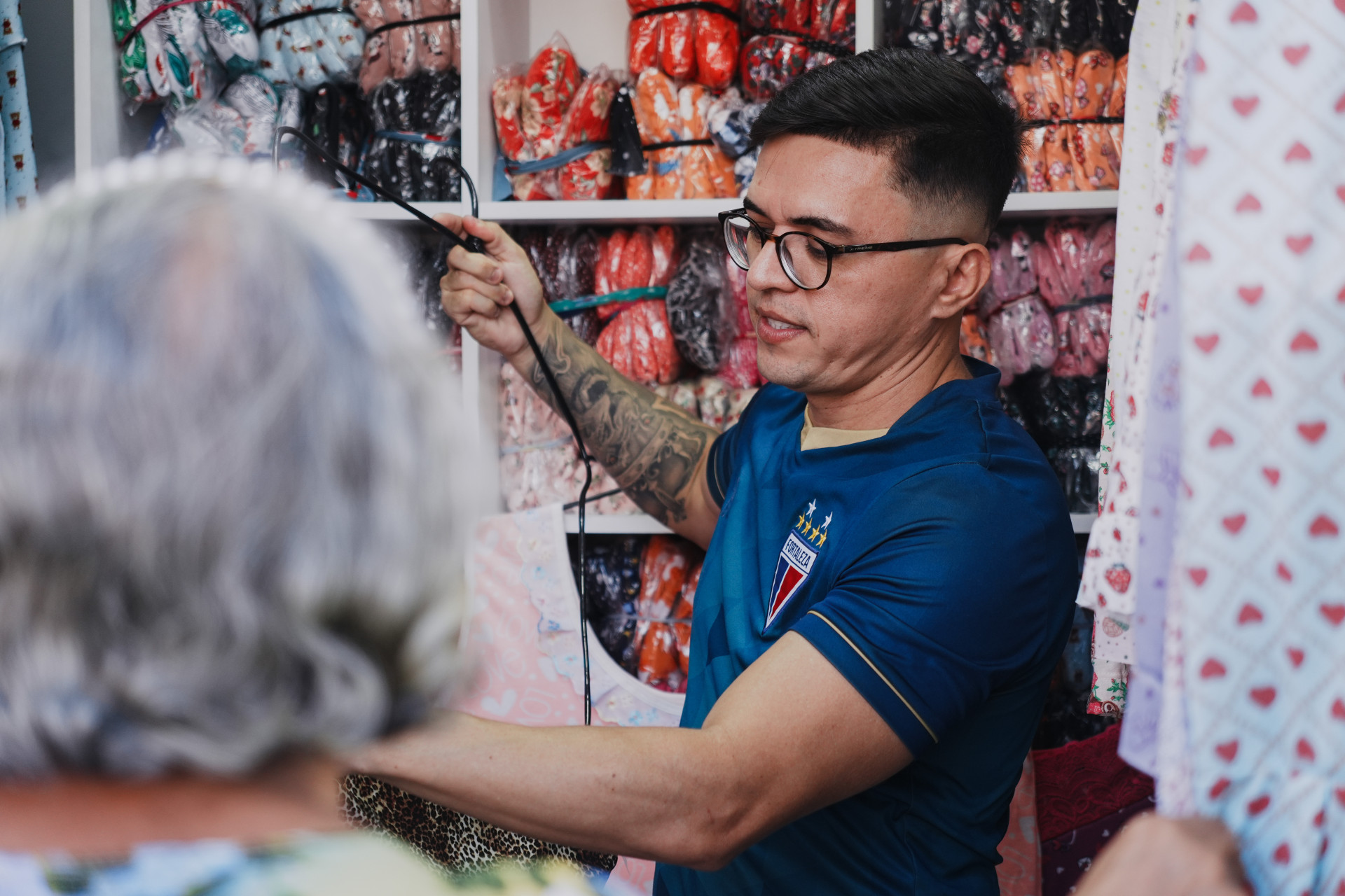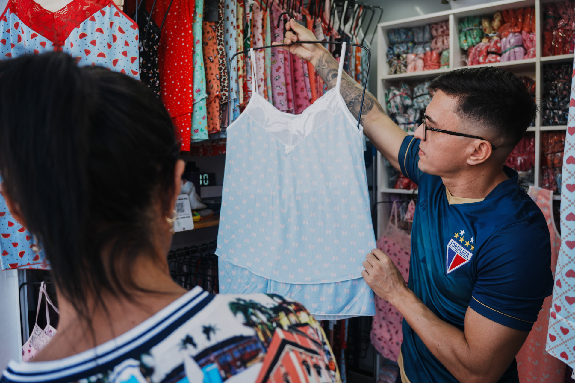 Paulo, que já trabalhava com ele há alguns anos, assumiu as vendas por conta da idade avançada de seu pai. “Eu resolvi assumir junto com ele, todo santo dia estou por lá. Trabalhando com venda de pijamas”, contou.
