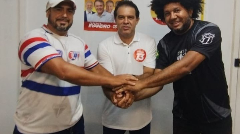 João Paulo "Bombado", presidente da Leões da TUF, esteve com Evandro e Régis Alves Pires, presidente em exercício da Cearamor, principal torcida organizada do Ceará. A foto com os três de mãos dadas viralizou nas redes sociais em meio às divergências que o passado do candidato como presidente do Alvinegro têm causado.