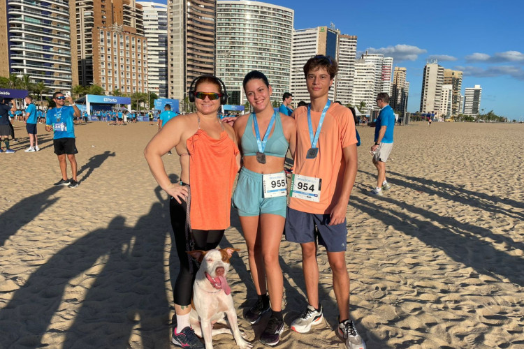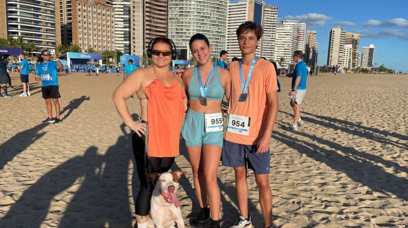 Acompanhados da mãe de Elis, Denise, e do pet da família, o cão pitbull Thor, os dois concluíram o circuito de cinco quilômetros e destacam o esporte não só como atividade física, mas também de sociabilidade.