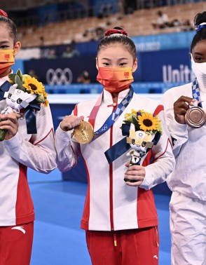 Biles superou seus problemas de confiança para reaparecer na final da ginástica feminina na capital japonesa e conquistar o bronze. A americana, que já havia conquistado o bronze na Rio-2016 neste mesmo aparelho, repete o pódio cinco anos depois ao atingir a pontuação de 14.000, longe da jovem Chenchen, que recebeu 14.633 pontos, e de Xijing, com 14.633.