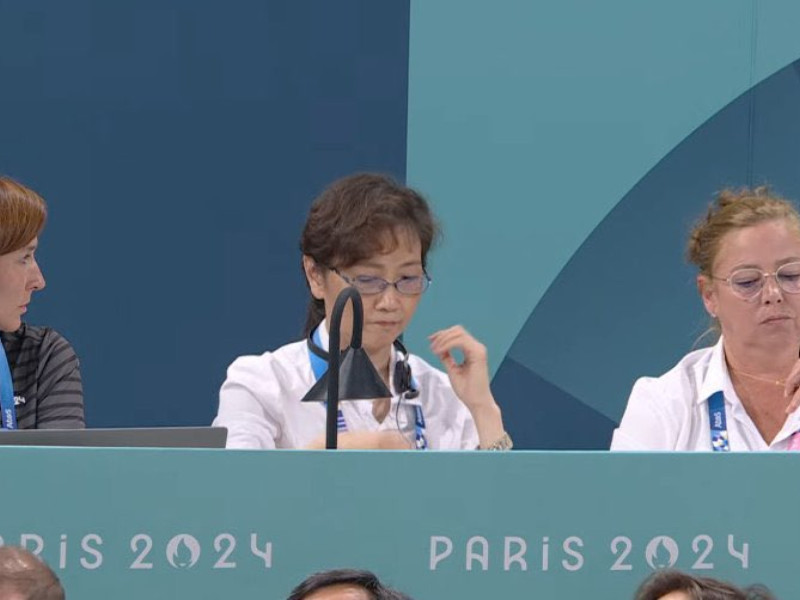 A árbitra-chefe chinesa Qiurui Zho, responsável por dar a nota que deixou Rebeca Andrade de fora do pódio da final da trave na ginástica artística na Olimpíada de Paris, nesta segunda-feira, 5, foi vista tirando foto da medalha de prata da ginasta chinesa, Zhou Yaqin.