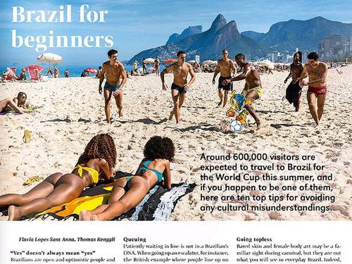 Na última sexta-feira, 22, a Fifa divulgou reportagem na revista eletrônica "Fifa Weekly" oferecendo dicas no chamado "Brasil para principiantes" aos turistas que devem visitar o País durante a Copa do Mundo de 2014.
