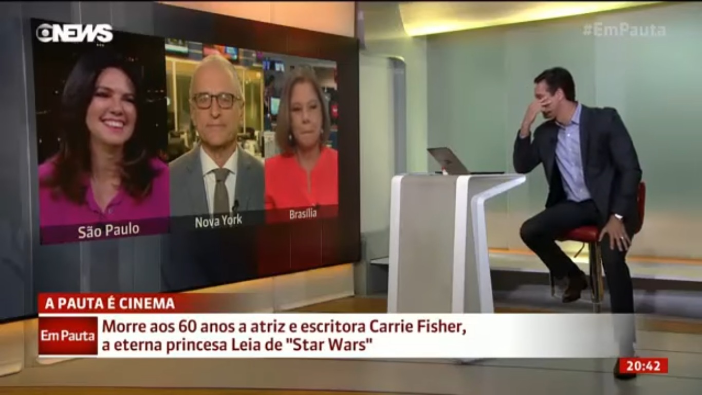 [FOTO1] O correspondente da Globo News Jorge Pontual dividiu opiniões do público nesta terça-feira, 27, ao noticiar a morte da atriz Carrie Fisher de uma forma bastante inusitada.