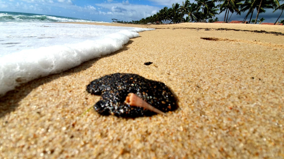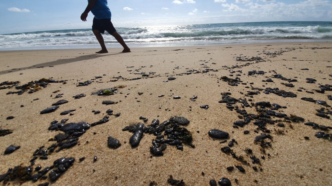 Veja imagens do óleo nas praias de Muro Alto e do Cupe, em Pernambuco