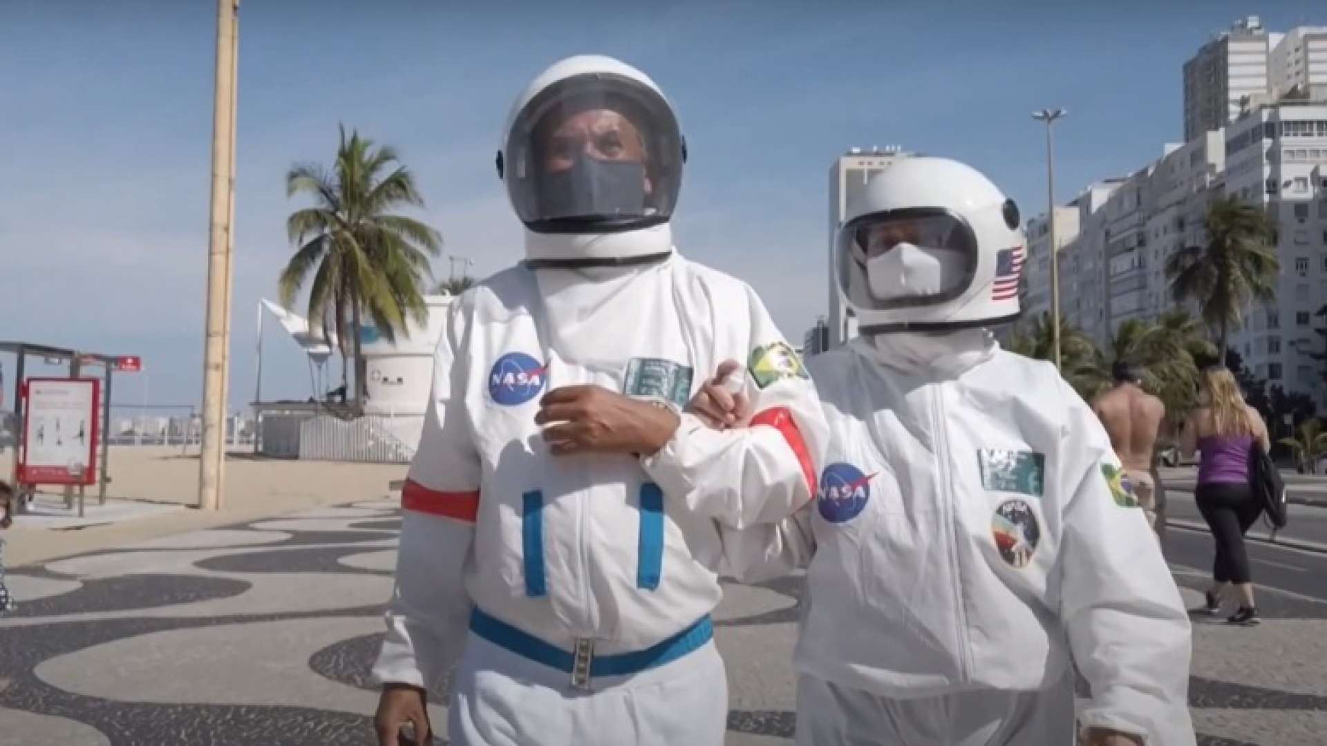 Sol forte e uma linda praia são algumas das atrações de Copacabana, no Rio de Janeiro. Mas um casal roubou a cena ao saírem e andarem pelo calçadão vestidos de astronautas. Além de serem usadas para se proteger da Covid-19, as roupas foram produzidas a partir do interesse pela astronomia e pela astrofísica.