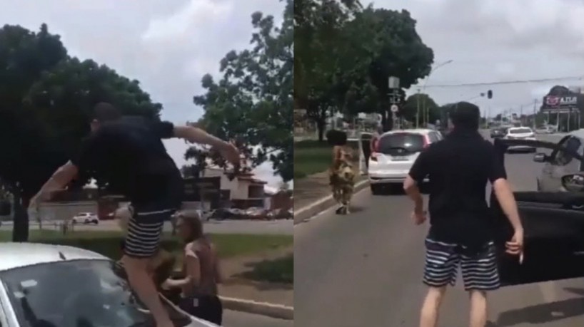 Após um acidente de trânsito, um homem perseguiu a mulher que bateu em seu carro ao dar ré em um posto de gasolina. Um vídeo, gravado por pessoas que presenciaram a cena, mostra o homem subindo no carro da mulher e quebrando o para-brisa do veículo. Em outra cena, ele puxa o braço da motorista. O caso aconteceu em Taguatinga, no Distrito Federal, no último domingo, 24.