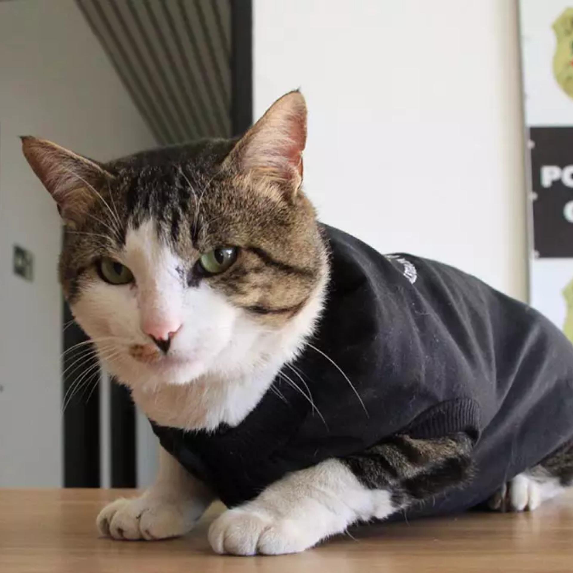 Agente crimiAU ou delegato? Gato é adotado por policias e ganha uniforme em delegacia de SP