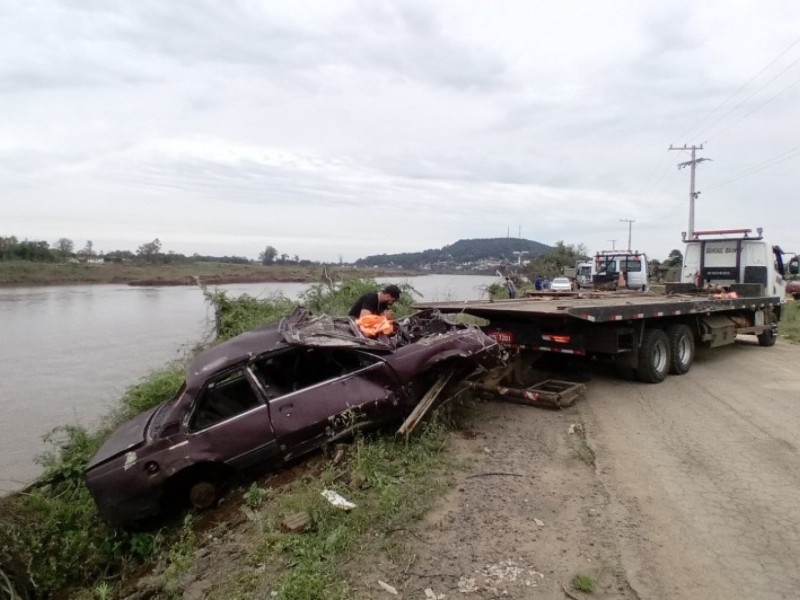 Dois carros e um ônibus foram retirados do rio Taquari, no Rio Grande do Sul, após operação de abertura das comportas de uma barragem na cidade de Bom Retiro do Sul, medida que ocasionou a redução do nível do rio em 2 metros.