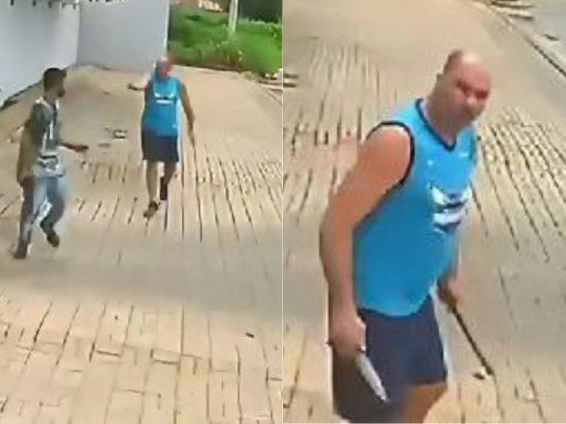 O condutor então acelerou o carro, estacionou e desceu com a faca e um pedaço de madeira, conforme é visto em um vídeo divulgado pela Força Tática de Senador Canedo.