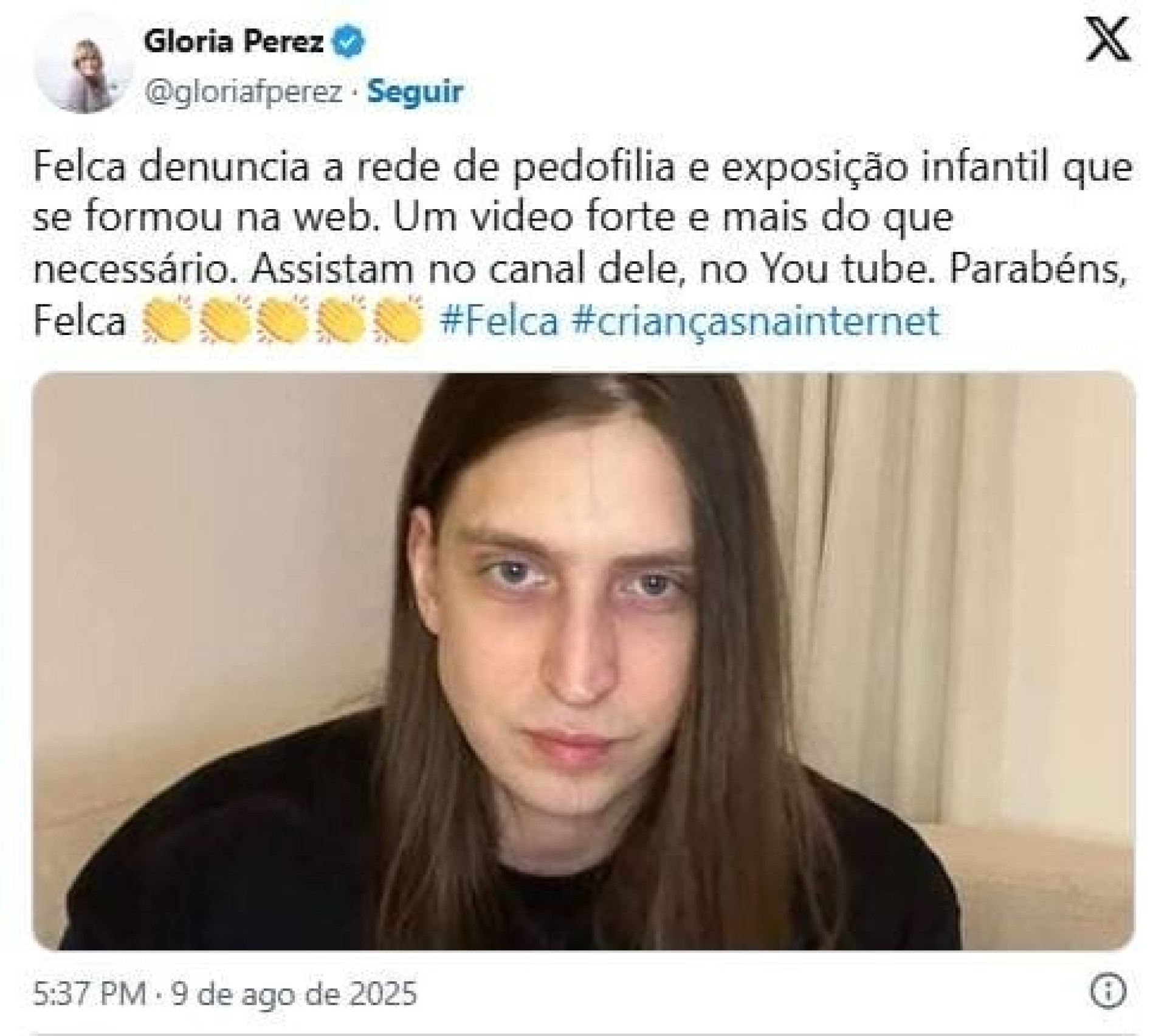 A publicação também recebeu apoio de personalidades públicas, como a escritora Glória Perez, a cantora Claudia Leitte e a deputada federal Erika Hilton, que utilizaram suas redes sociais para agradecer e manifestar apoio a Felca.