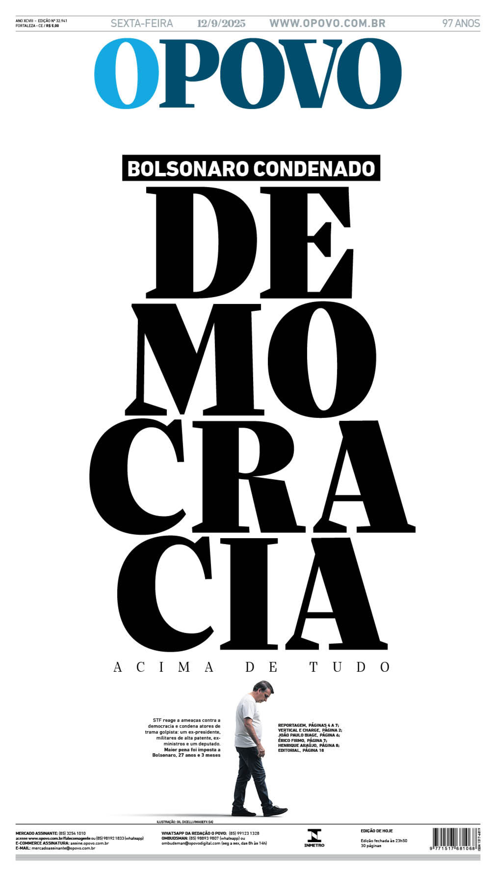 Após a condenação do ex-presidente Jair Bolsonaro na quinta-feira, 11, a edição impressa de 12 de setembro de 2025 do Grupo de Comunicação O POVO viralizou entre as coberturas e foi compartilhada nas redes sociais.