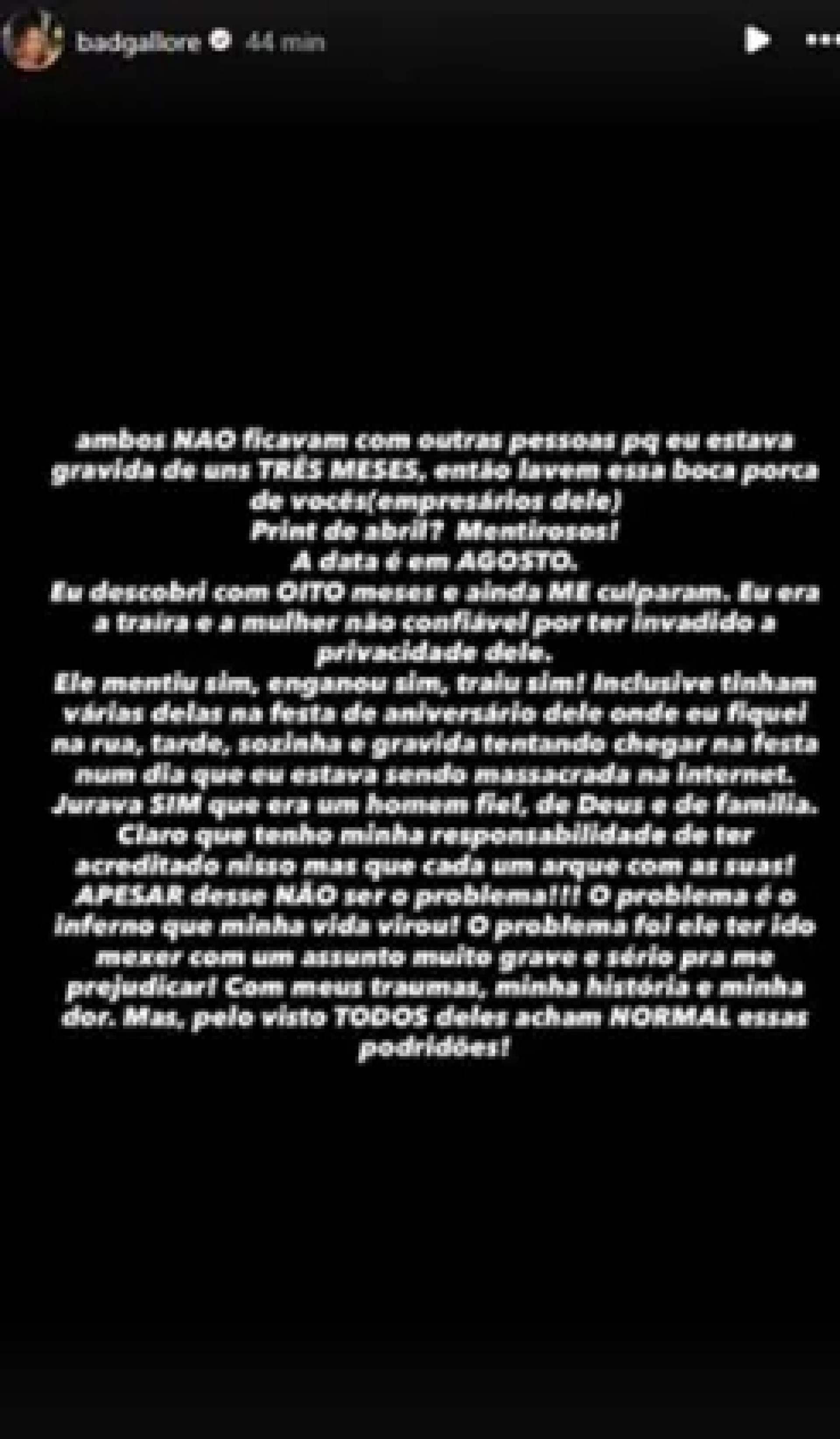 Lorena, influenciadora digital de 26 anos e mãe de Rás, de 10 meses, compartilhou prints de conversas que, segundo ela, provam que o funkeiro a traiu durante a gestação. Em vídeos, ela declarou que sua vida se transformou em um “inferno” após o término e ressaltou os danos emocionais causados pelas atitudes do cantor.