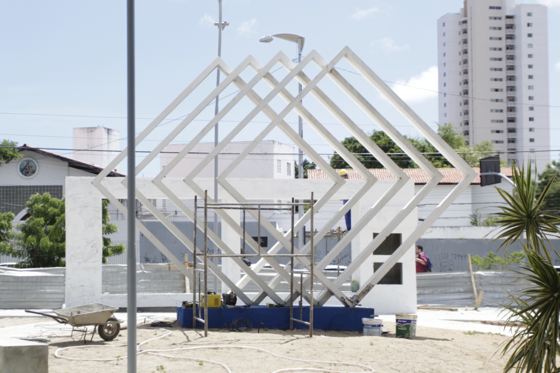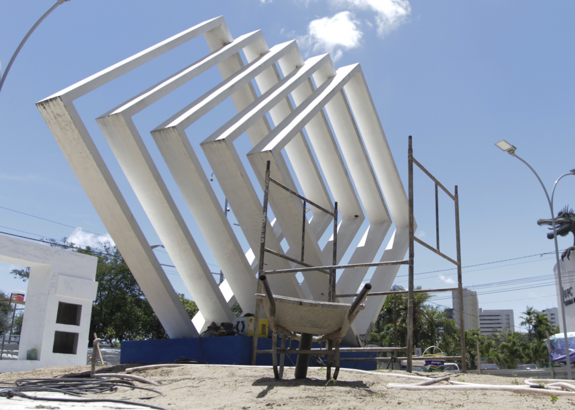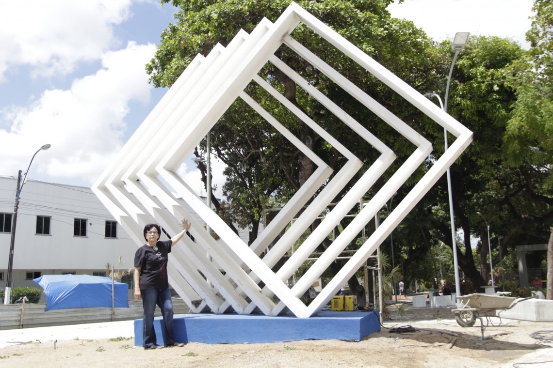 Escultura de Sérvulo Esmeraldo é prejudicada pelas obras da praça Prisco Bezerra