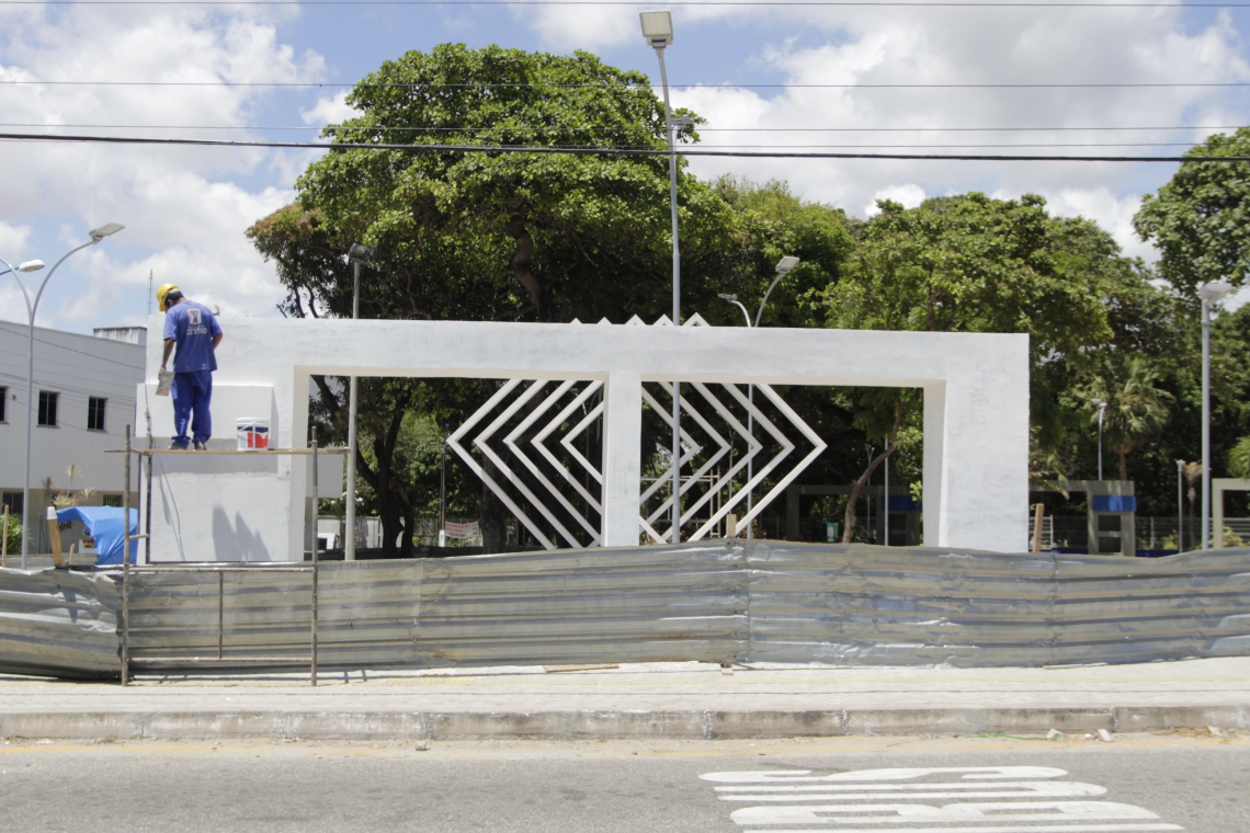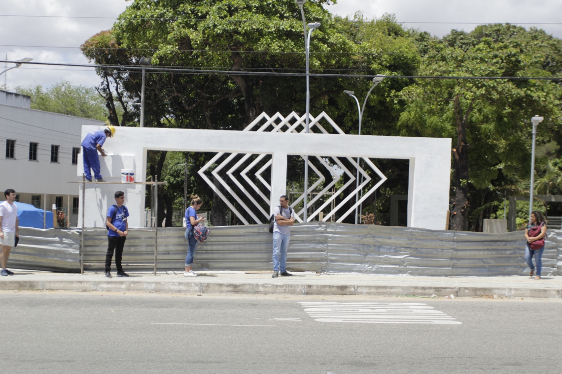 A escultura “Quadrados”, do artista Sérvulo Esmeraldo, na entrada do Campus do Pici da Universidade Federal do Ceará (UFC), chamaria mais atenção de quem passa na avenida Humberto Monte se pudesse ser apreciada em sua totalidade. Com as obras de construção da praça Prisco Bezerra, o monumento, que já tinha a visibilidade prejudicada devido aos dois abrigos de ônibus localizados a sua frente, ficou ainda mais encoberto. Além disso, o processo de restauro da obra começou sem a consulta prévia do Instituto Sérvulo Esmeraldo, responsável pela preservação das obras do artista.