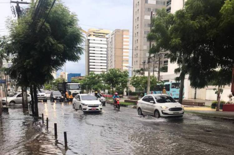 Fortaleza e Região Metropolitana apresentam chuva na manhã desta terça-feira, 17. O cenário favorável para precipitações segue até pelo menos a quarta-feira, 18, conforme a previsão da Fundação Cearense de Meteorologia e Recursos Hídricos (Funceme), que aponta eventos de chuvas em todas as regiões com predomínio de nebulosidade variável ao longo destes dias. Com a precipitação nesta manhã, pontos de alagamento foram registrados entre a Avenida da Abolição e a rua Silva Palet, no bairro Meireles, em Fortaleza.