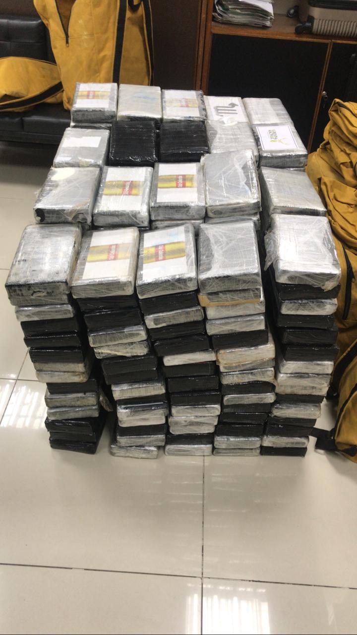 O trio, encontrado dentro de um veículo com a droga, responderá pelos crimes de tráfico internacional de drogas e associação para o tráfico, cujas penas podem variar de 7 a 25 anos de reclusão. Veja mais registros da apreensão: