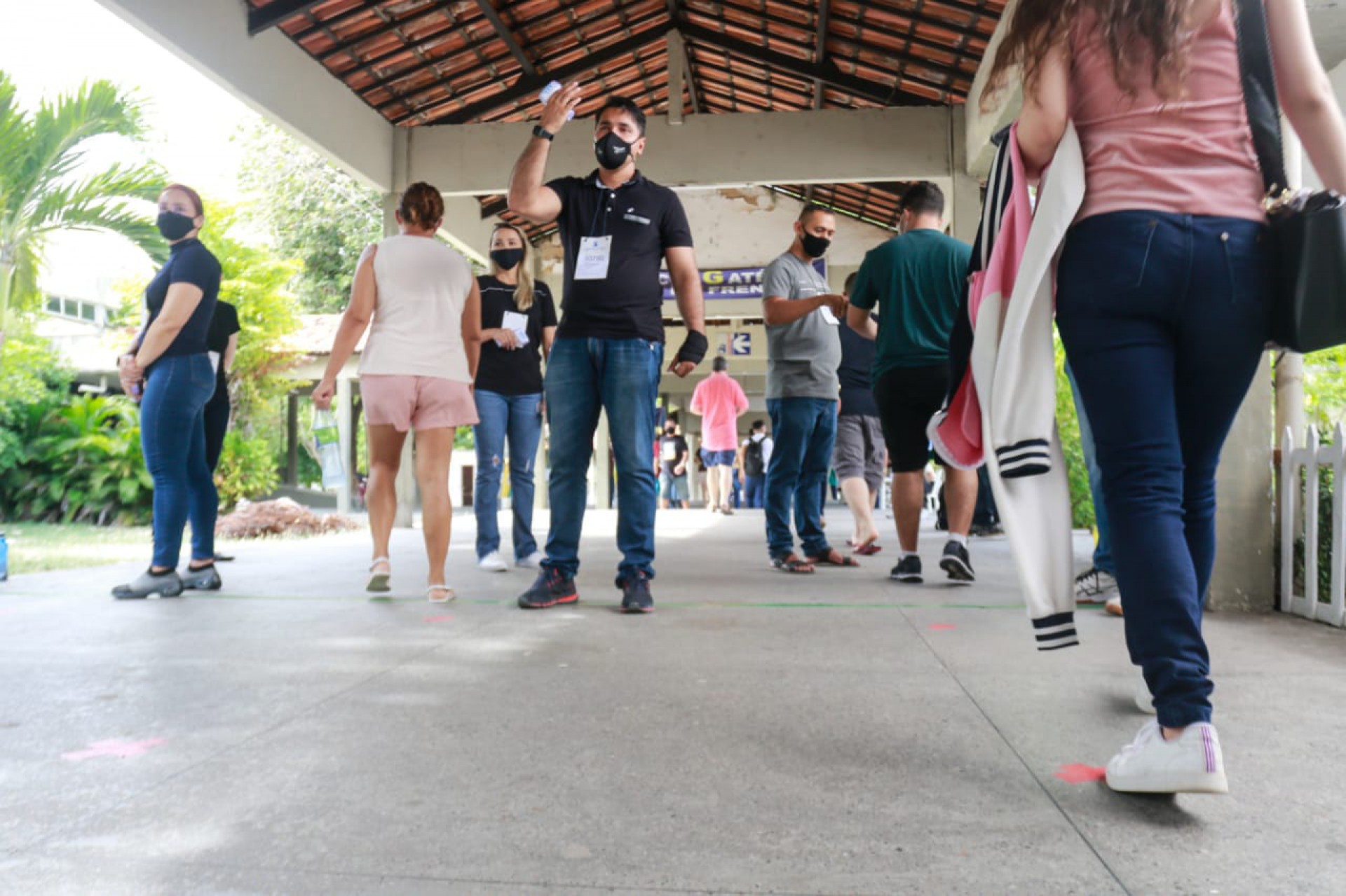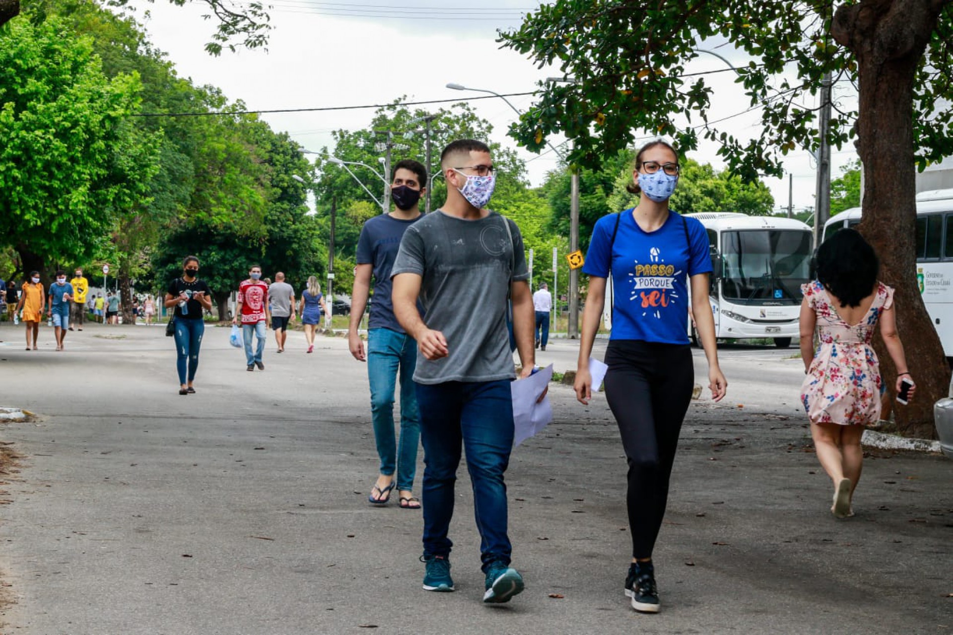 A primeira fase do Vestibular 2020.2 da Universidade Estadual do Ceará (Uece) teve início na manhã deste domingo, 6 de dezembro (06/12), com adoção de medidas para conter a disseminação do coronavírus e instabilidade no site. Nos locais que realizam a prova, o uso de máscaras, a aferição de temperatura e o distanciamento dos candidatos com sinalização no chão foram alguns dos recursos utilizados para prevenir a Covid-19.