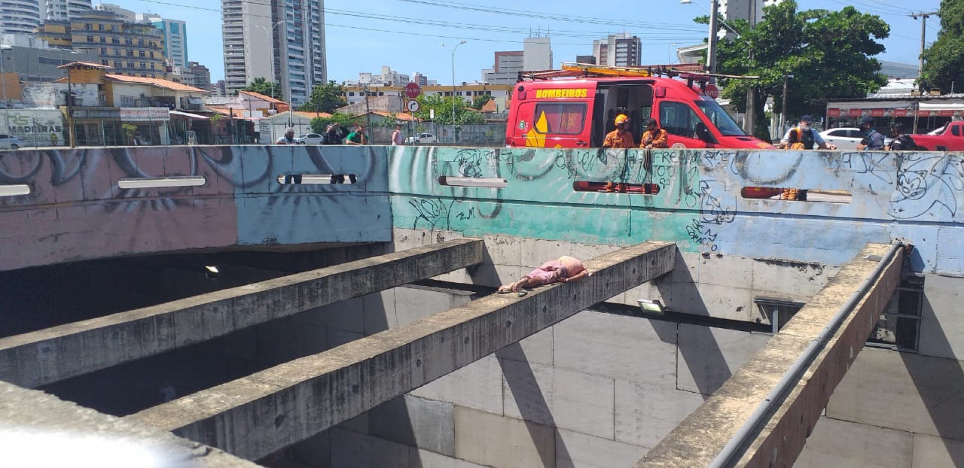 Um homem em situação de rua foi encontrado, na tarde desta segunda-feira, 22, dormindo em cima de uma das pilastras que ficam sobre o túnel da avenida Santos Dumont, no bairro Papicu, em Fortaleza. De acordo com informações do Corpo de Bombeiros Militar do Ceará (CBMCE), agentes retiraram o indivíduo do local logo após serem acionados por populares.