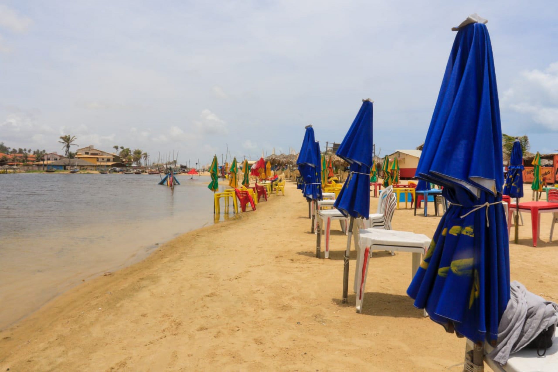 Mesmo com barracas fechadas, grupos frequentam a Prainha, em Aquiraz, no 1º dia de lockdown