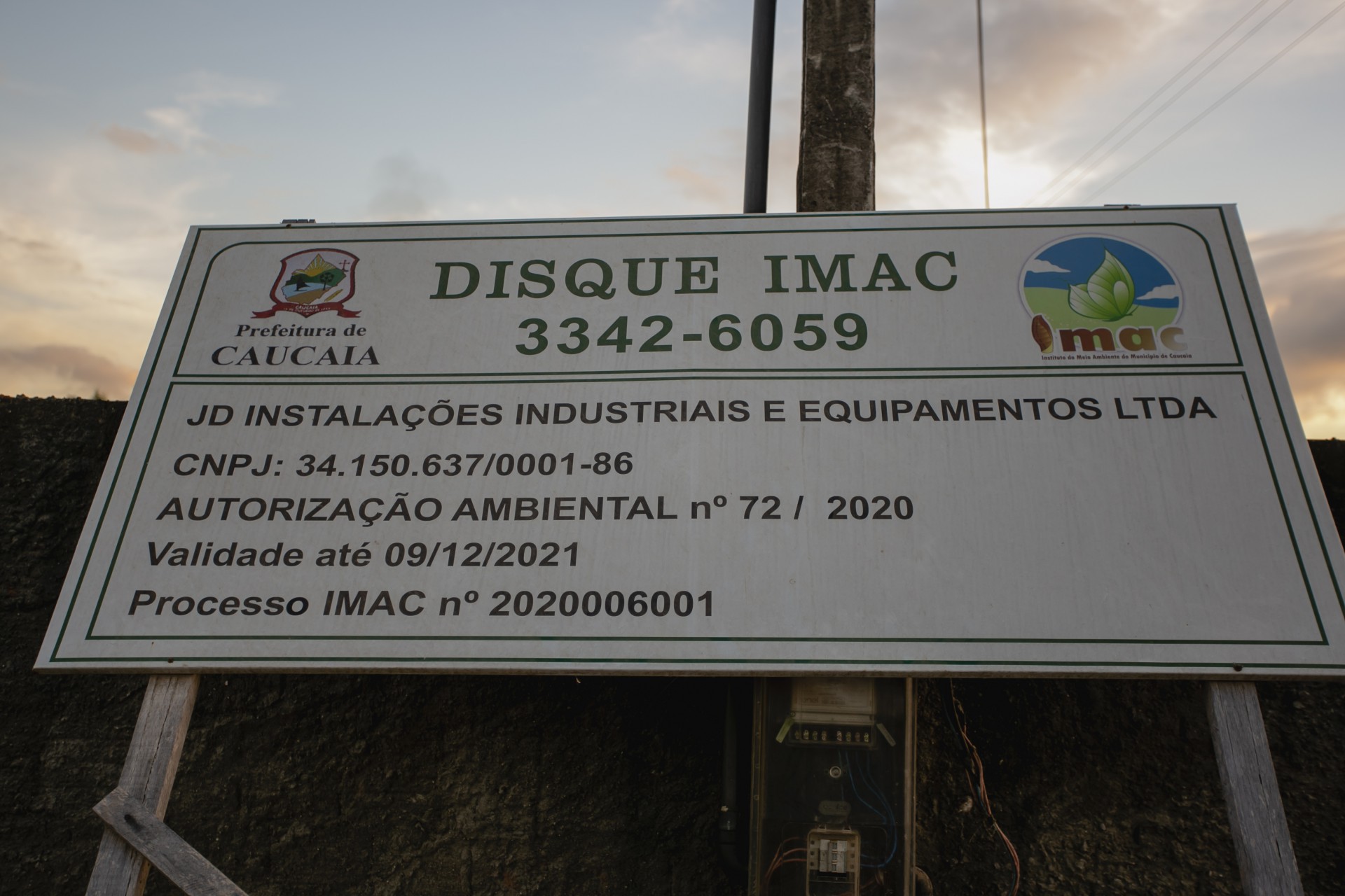 No local, há uma placa de autorização ambiental em nome da empresa JD Instalações Industriais e Equipamentos, que possui sede no município de Maracanaú e atua no ramo de fabricação de estruturas metálicas. A licença foi expedida pelo Instituto de Meio Ambiente de Caucaia - IMAC, autarquia ligada à prefeitura municipal.