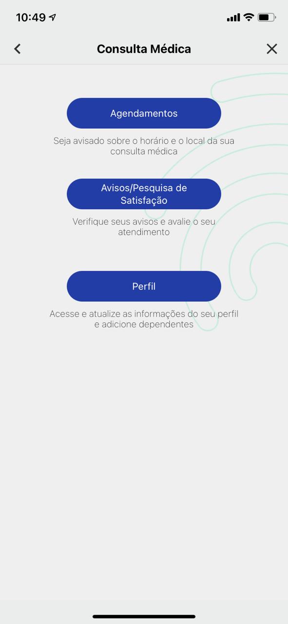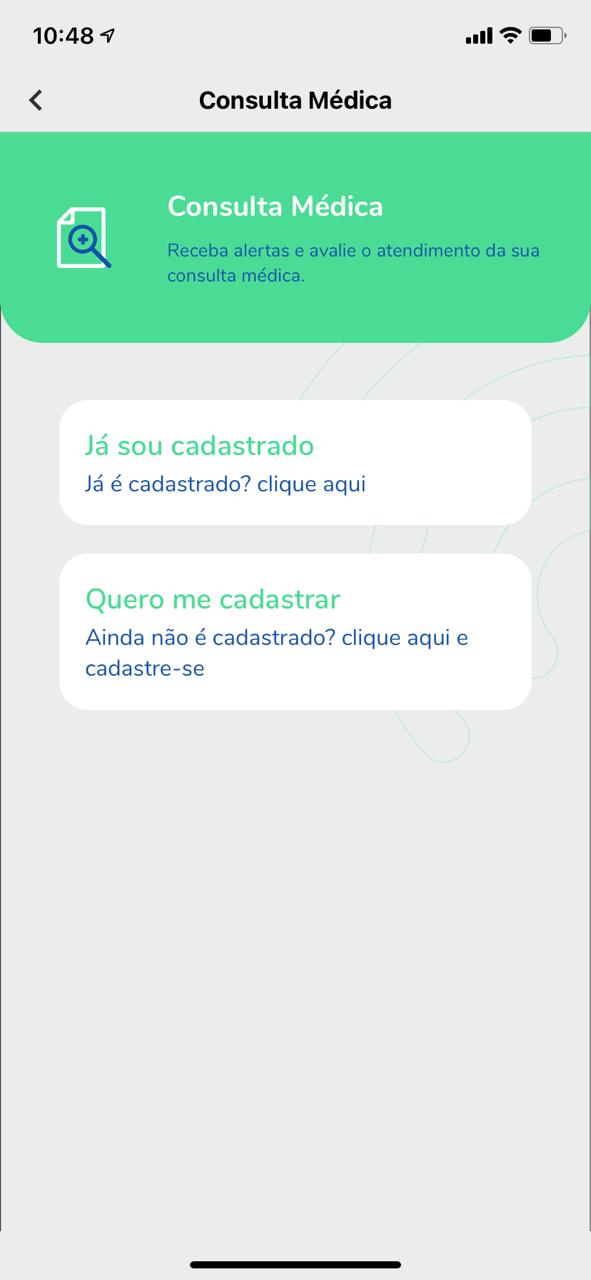 2. Ao abrir o aplicativo, clique na função "Consulta Médica"