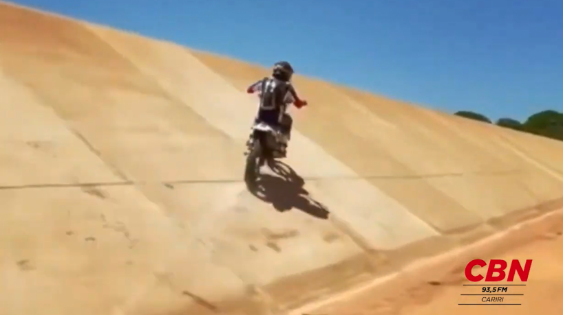 Um motociclista foi gravado realizando manobras dentro do Cinturão das Águas, em Barbalha, no Ceará. Concebido para viabilizar uma maior capilaridade das vazões transpostas pelo Projeto de Integração do Rio São Francisco em território cearense, o trecho da região do Cariri deve ser entregue em breve.