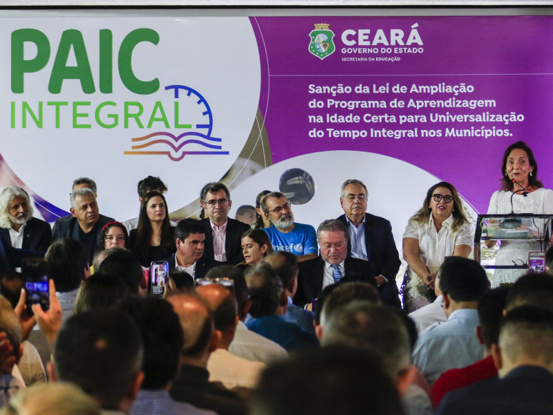O Governo do Ceará estabeleceu como meta a universalização do tempo integral nas escolas de ensino fundamental das redes municipais até 2026. Com um investimento total de R$ 900 milhões, cerca de R$ 2 mil por aluno, a lei foi sancionada na manhã desta sexta-feira, 16, e busca ampliar o Programa Aprendizagem na Idade Certa (Mais Paic).