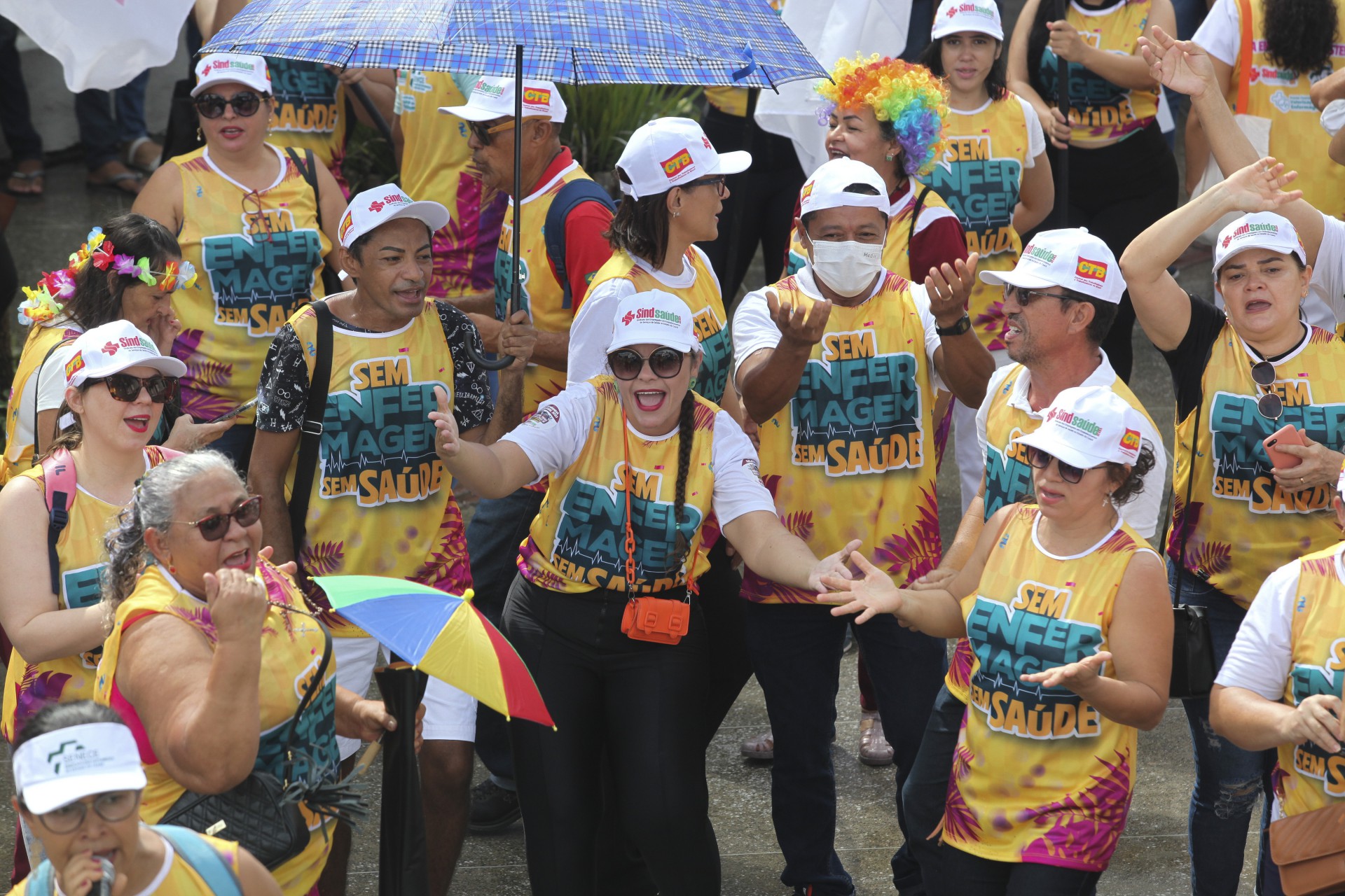 Irismar Silveira, 36, também é técnica e trabalha há três anos na área. De acordo com ela, a enfermagem é “uma categoria muito sofrida, que lida com vidas e acompanha o ser humano do nascer ao morrer. A gente precisa de valorização, na época da pandemia fomos chamados de heróis, mas nossa realidade é muito diferente”.