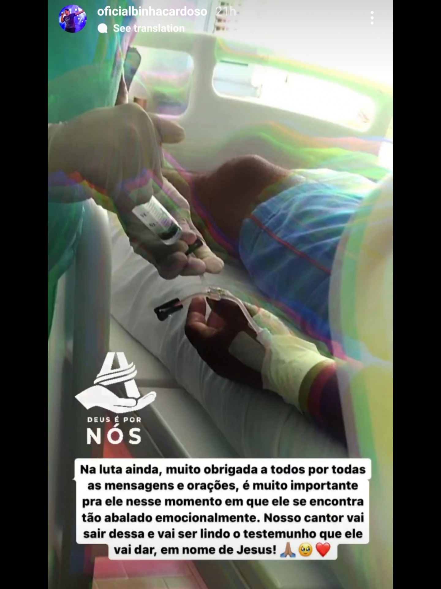 “Atualizações sobre o estado de saúde do Binha: acordou lúcido hoje, graças a Deus, mas não lembra de nada do acidente. Graças a Deus está bem melhor que ontem e aguardando pela cirurgia.”