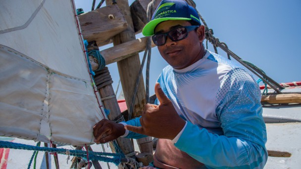 João Paulo foi o mestre, o responsável pelo remo que dá direção à jangada, e junto a mais três homens, que assumiram funções como a de “aguador” (que molha a vela com um pequeno balde acoplado a uma vara para que a velocidade aumente), eles festejaram a conquista e o direito de levar para casa o prêmio de R$ 3 mil.