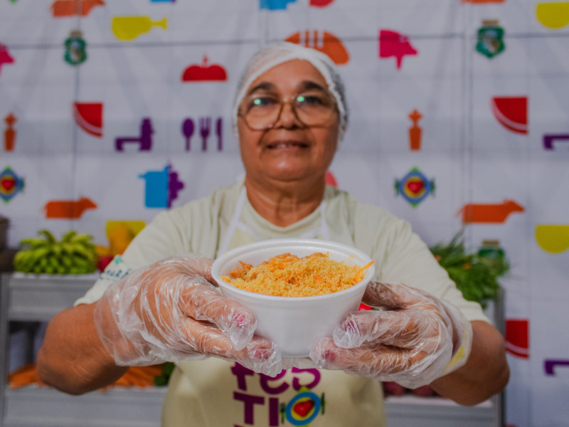 Ao todo, 120 cozinhas foram selecionadas para produzir as refeições distribuídas no evento. Aos 80 anos de idade, a voluntária Socorro da Silva atua, há 41 anos, no preparo das refeições no bairro José Walter, na Capital.