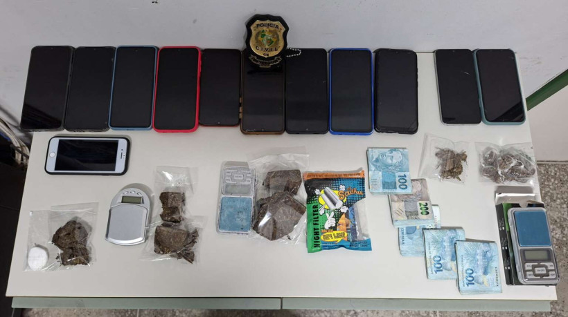 Os policiais civis também apreenderam uma quantidade de maconha, uma balança de precisão, celulares e papel de seda na residência do suspeito de 22 anos. Por esse motivo, o homem foi autuado por tráfico de drogas.