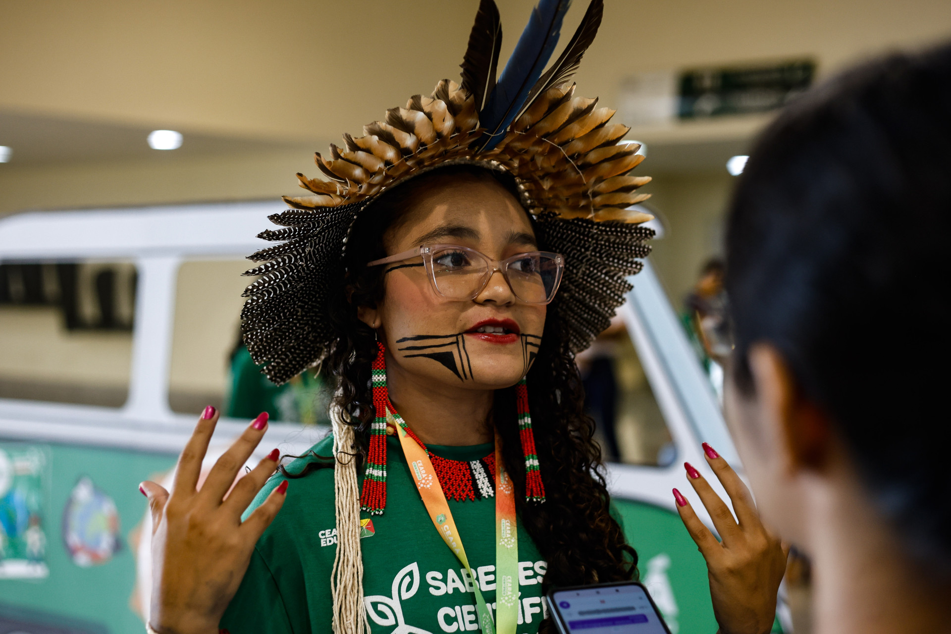 Yasmin Tremembé é aluna do 3º ano da Escola Indígena Brolhos da Terra, de Itapipoca. Ela apresenta o projeto “Medicina Tradicional Tremembé como caminho para a sustentabilidade e a preservação ambiental”. Ela explica que o trabalho se baseia na relação entre ancestralidade e cuidado com o território.